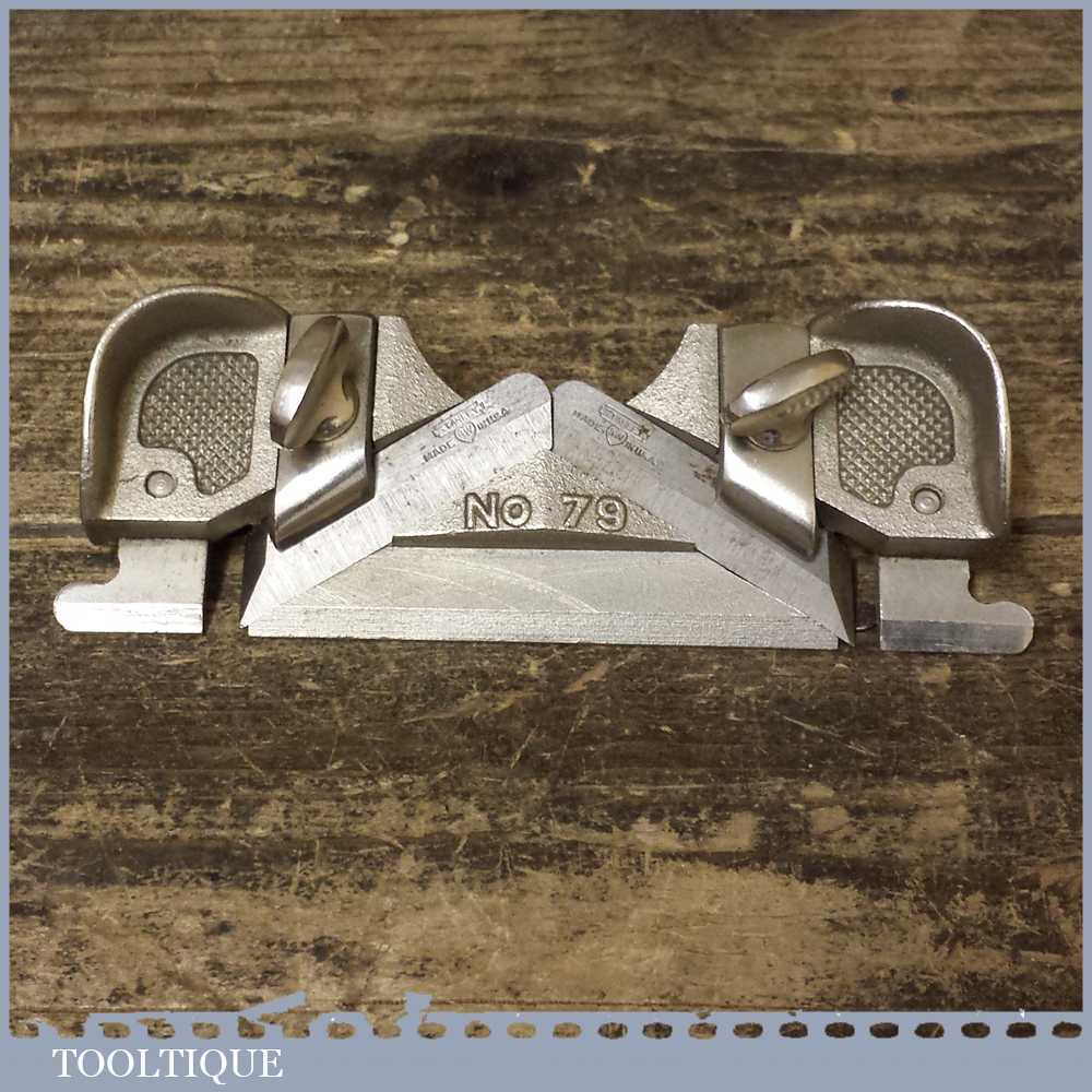 Vintage Stanley Sweetheart USA No: 79 side rabbet plane with original cutters and good nickel coating in good used condition. This earlier version did not have a fence so is complete.