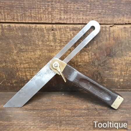 Vintage Stanley Sweetheart USA rosewood and brass sliding bevel with quick release lever and 10” blade, in good used condition and ready for use.