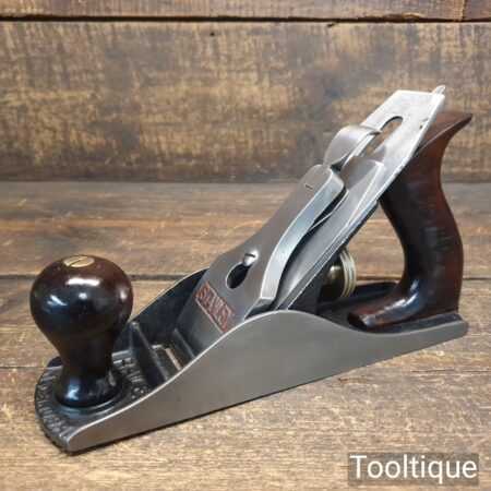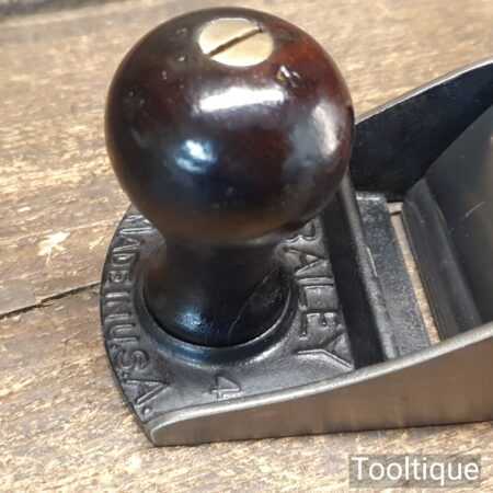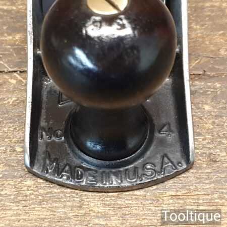 Vintage Stanley U.S.A Pat Date (APR 19-10) No: 4 smoothing plane with rosewood handles, fully refurbished and in good used condition, ready to use. Note: Plane has a Sweetheart Iron, crack on tote handle and knob has been resin filled and smooth in the hand.