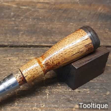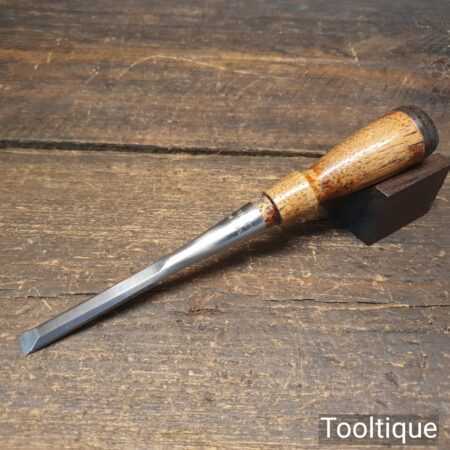 Vintage Stanley USA ⅜” everlasting socketed bevel edge chisel with mahogany handle in good used condition, fully refurbished sharpened and honed ready for use.