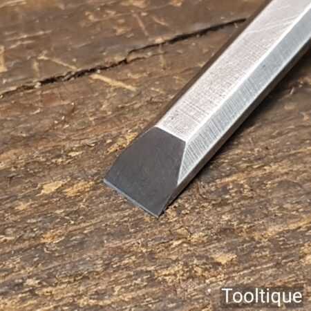 The chisel has been checked to ensure the tang is seated properly and the handle is solid and fit for use. All refurbished chisels are water cooled during the sharpening process to ensure the tempering is not affected.