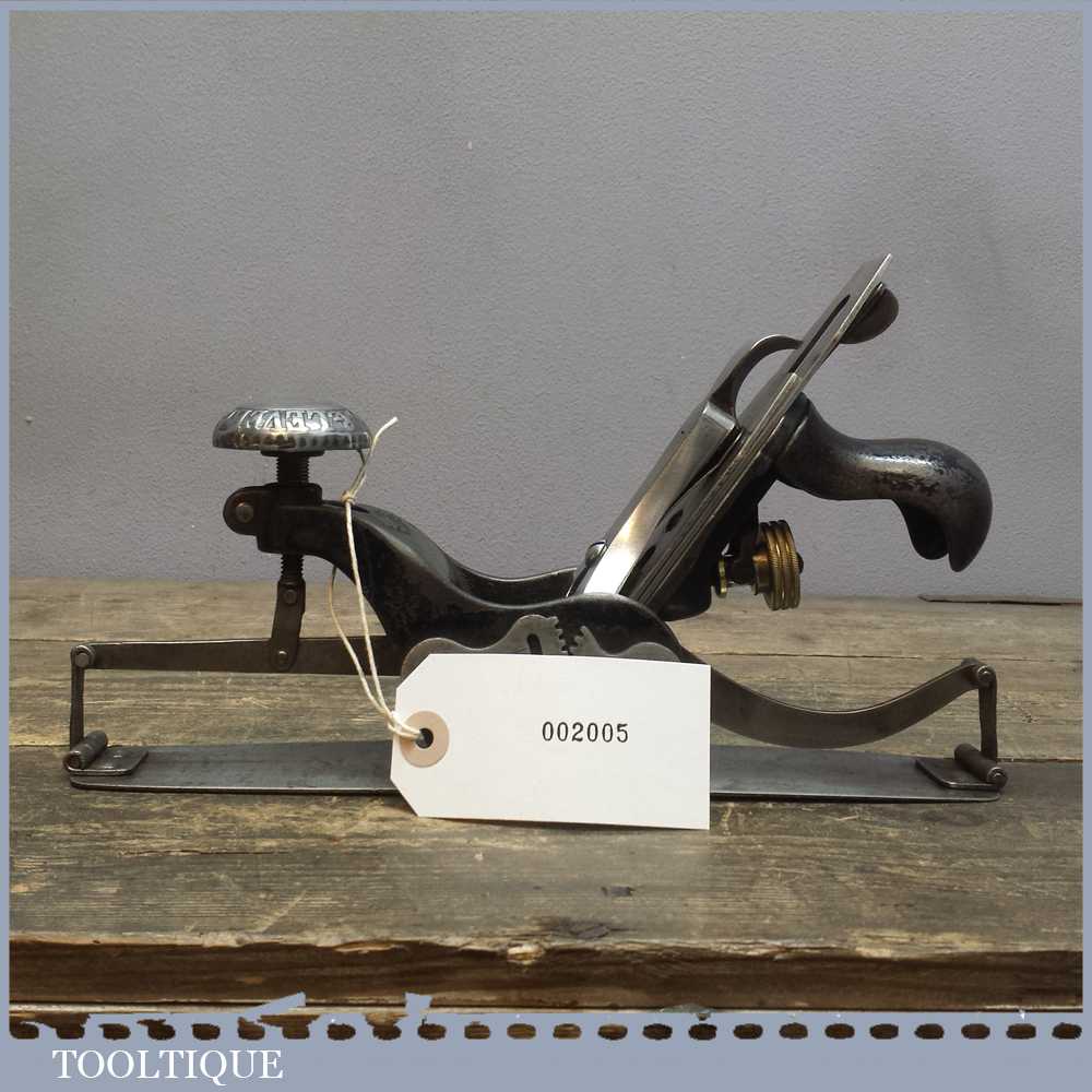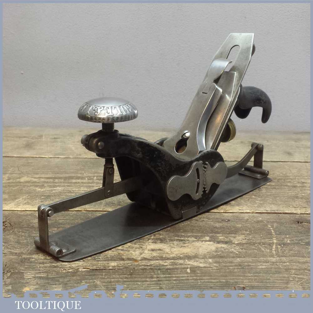Vintage Stanley USA No: 113 compass plane with original pat dated iron and is in good used condition has been cleaned so that everything moves freely and works as it should do. It has a good consistent curve with light pitting / rust marks to the sole which is quite common for these.