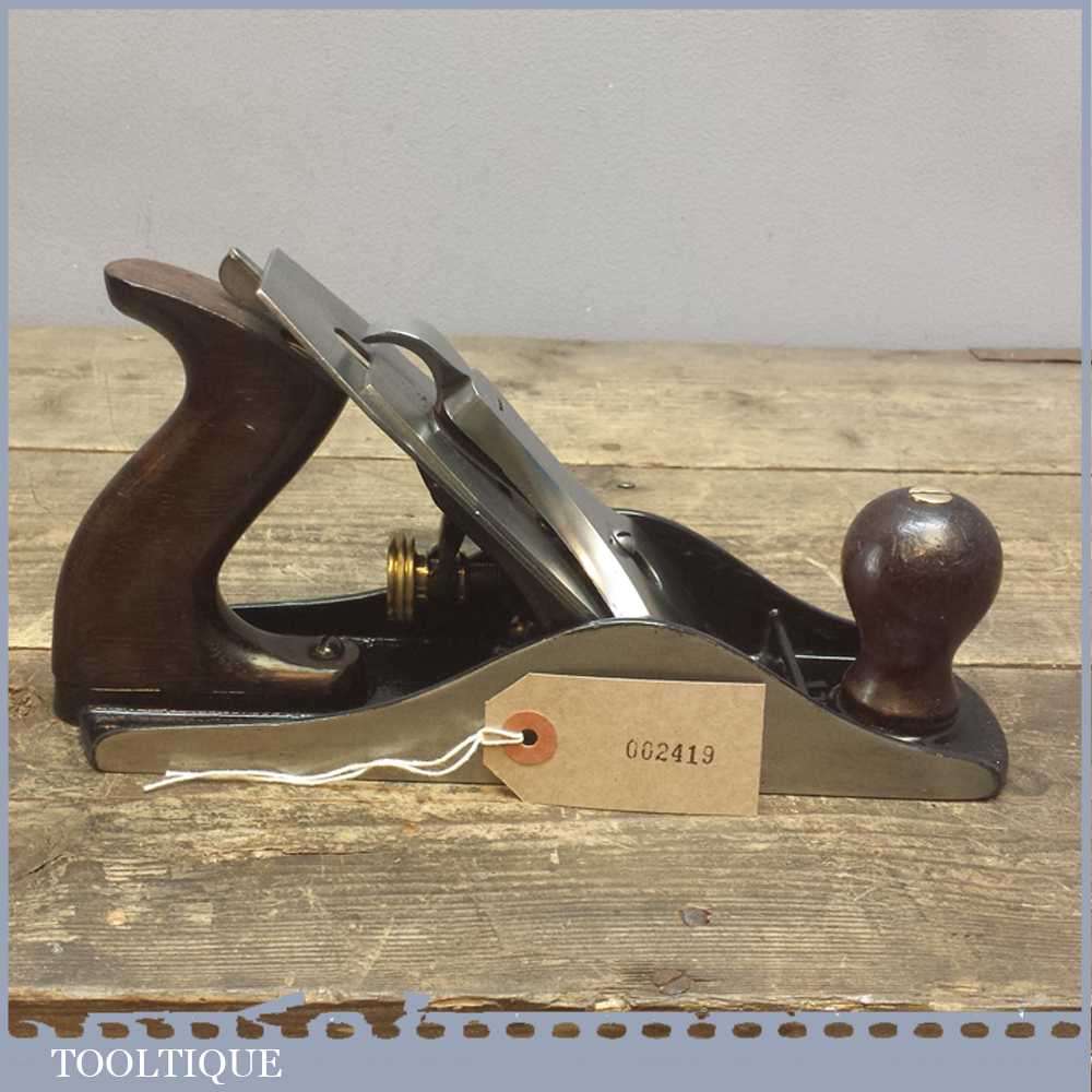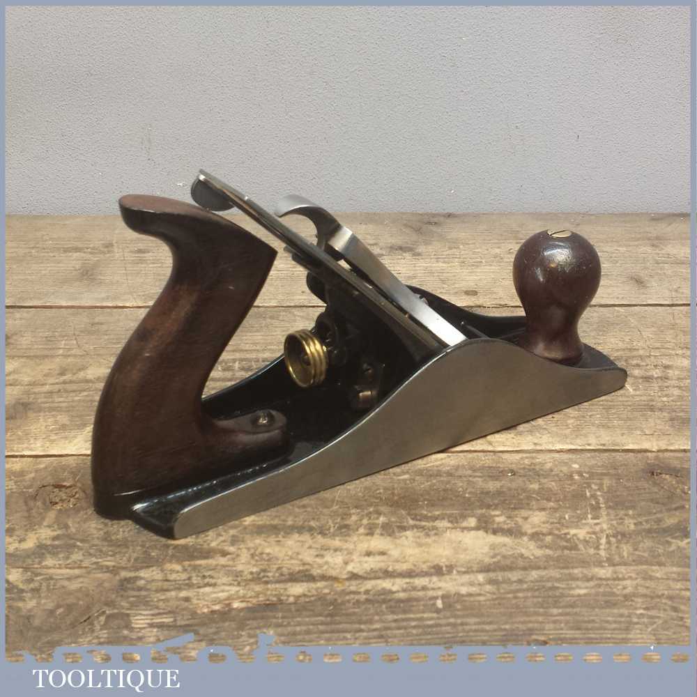 Vintage Stanley USA No: 4 ½ smoothing plane which has been fully refurbished is ready to use. It has a good length made in England Iron and rosewood handles.