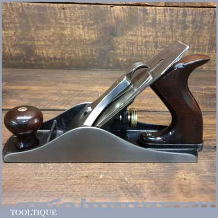 Vintage Stanley USA No: 4 ½ wide bodied low knob smoothing plane (Pat dated 1895) with original iron and rosewood handles, fully refurbished ready to use and in good used condition