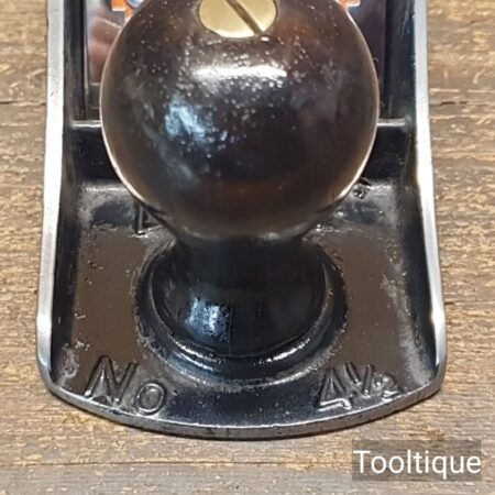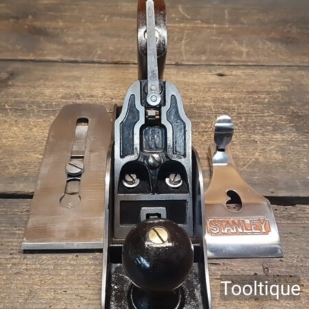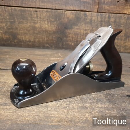 Vintage Stanley USA No: 4 ½ Wide Bodied Smoothing Plane with Rosewood Handles and an English 2 3/8” replacement iron, fully refurbished ready for use and in good used condition. Note: Rosewood Tote has a good smooth and solid repair. When refurbishing planes, we do not merely clean them to make them look good, they are restored to a level that ensures this plane is actually ‘in plane to within 0.02mm’ sharpened, honed and all the components are thoroughly cleaned so that they move freely. Our planes are specifically reconditioned to satisfy professional tradesmen who will instantly know the difference between buying one of our planes over general other used ones.