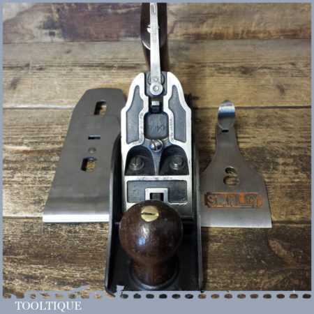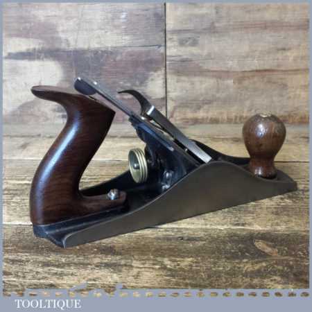 Vintage Stanley USA No: 4 ½ wide bodied smoothing plane with rosewood handles, fully refurbished ready to use and in good used condition. Note: Fitted with later Stanley, England iron.
