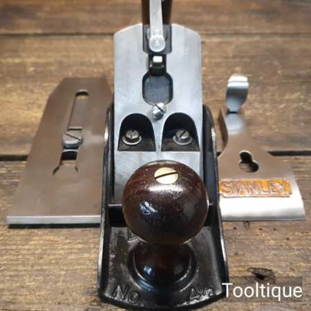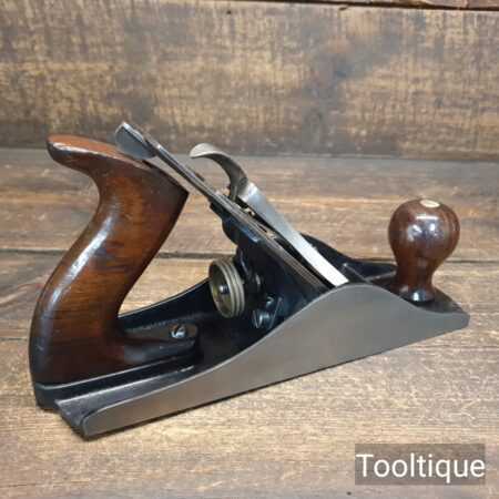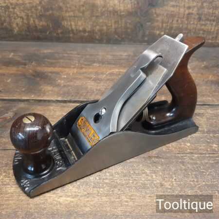Vintage Stanley USA No: 4 ½ wide-bodied smoothing plane with rosewood handles, fully refurbished and in good used condition, ready to use. Note: The plane comes with a sweetheart Iron.