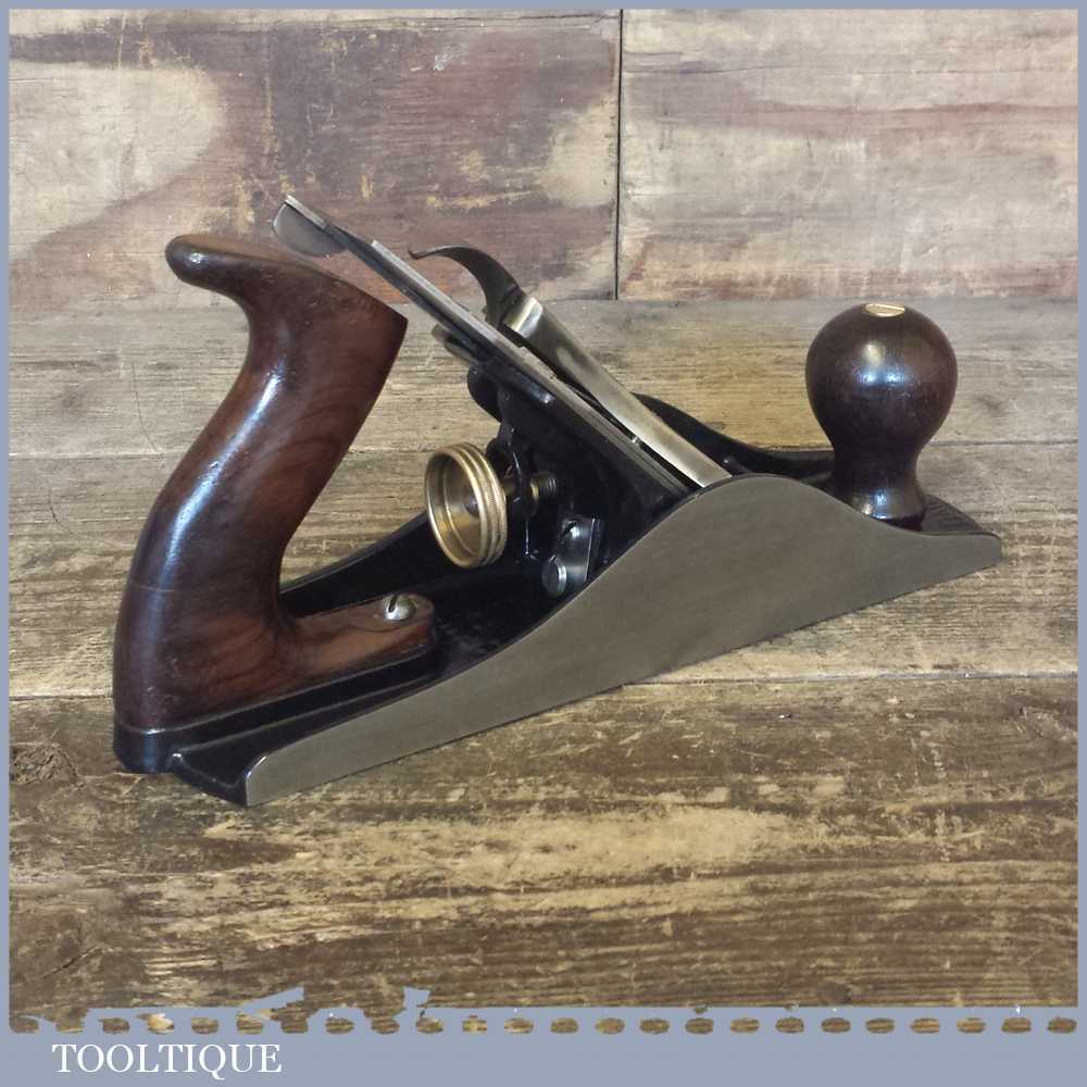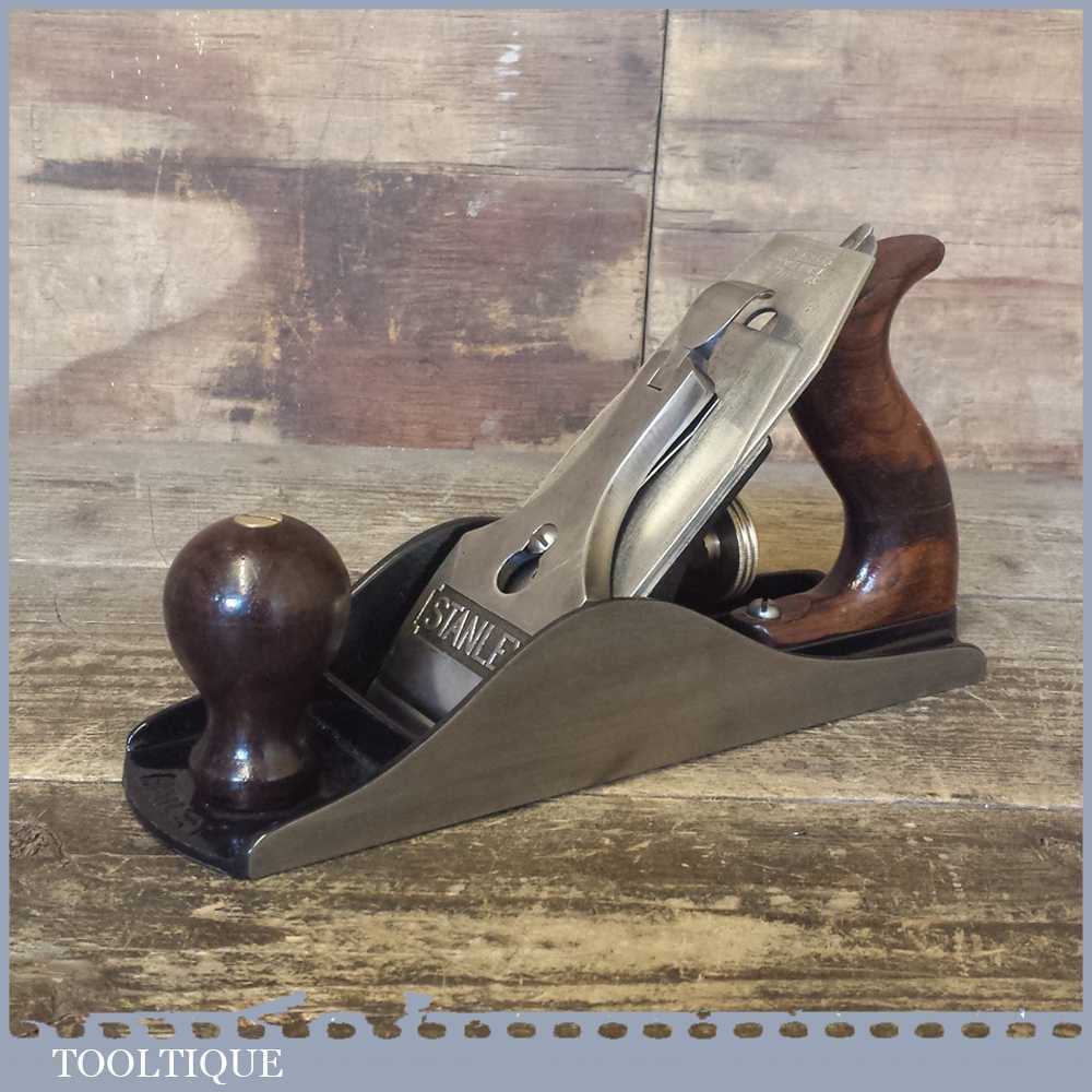 Vintage Stanley USA No: 4 ½ wide bodied smoothing plane Patent dated 1910-18 with rosewood handles, fully refurbished and ready to use. Note: the tote has had a solid repair and the iron is also made in the USA.