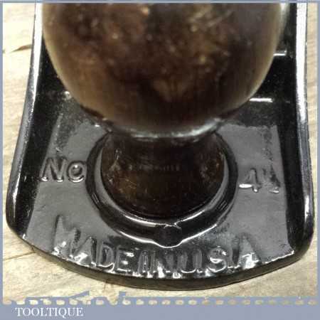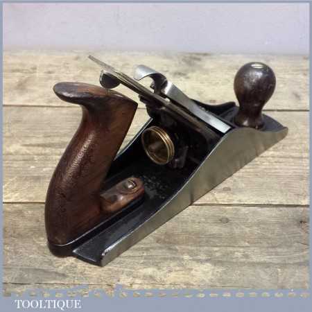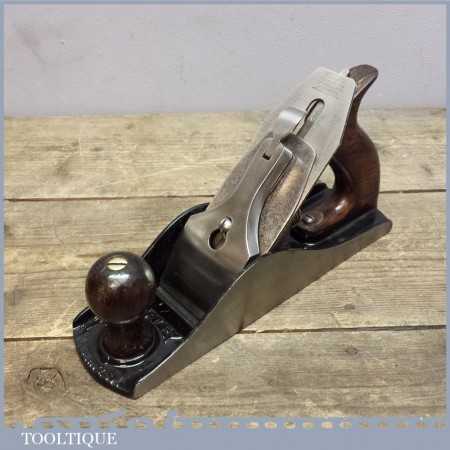 Vintage Stanley USA No: 4 1/2 wide bodied smoothing plane in good condition fully refurbished ready to use. This plane was made in USA and comes from their best period of production 1910-18. The Plane has Rosewood handles although the rear handle has been properly repaired to retain originality.