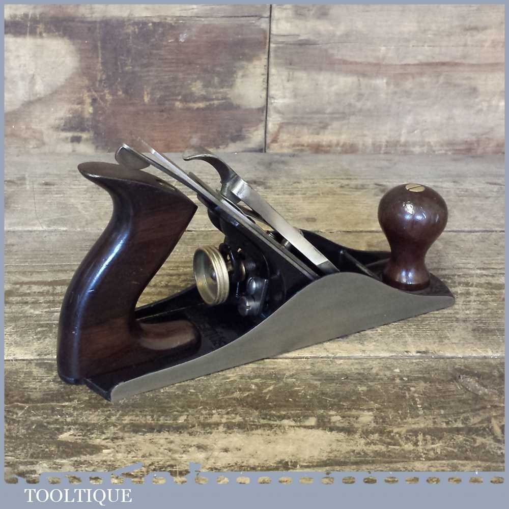 Vintage Stanley USA No: 4 smoothing plane fully refurbished ready to use. This example has rosewood handles and a made in England iron and as with all these earlier planes they have a slimmer lighter casting than later models.