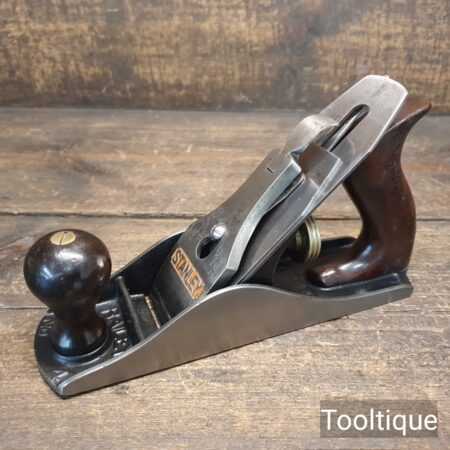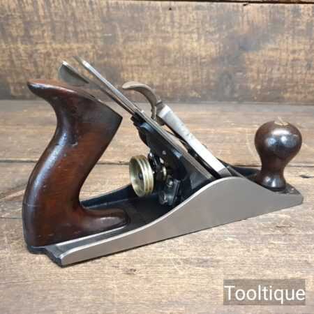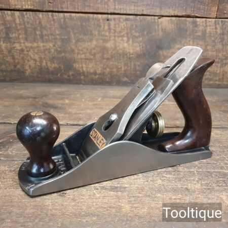 Vintage Stanley USA No: 4 smoothing plane with rosewood handles, fully refurbished ready for use and in good used condition. Note: English Iron. When refurbishing planes, we do not merely clean them to make them look good, they are restored to a level that ensures this plane is actually ‘in plane to within 0.02mm’ sharpened, honed and all the components are thoroughly cleaned so that they move freely. Our planes are specifically reconditioned to satisfy professional tradesmen who will instantly know the difference between buying one of our planes over general other used ones.
