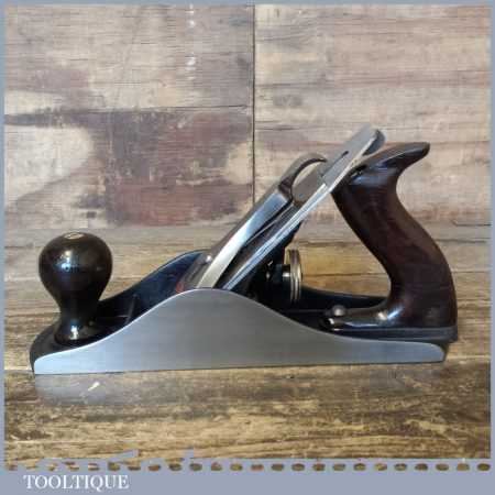 Vintage Stanley USA No: 4 smoothing plane fully refurbished ready for use and in good used condition. Note: the plane has a later Made in England replacement iron and the rosewood tote has been repaired but is solid for use.