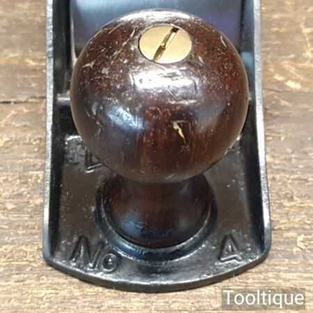 Vintage Stanley USA No: 4 smoothing plane with a sweetheart Iron and rosewood handles, fully refurbished and in good used condition, ready to use. Note: Sweetheart iron is faded, good repair to the tote.