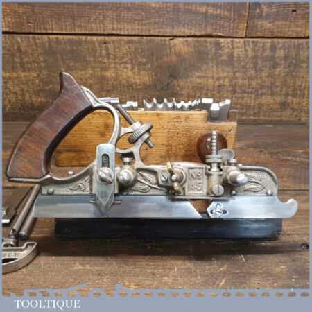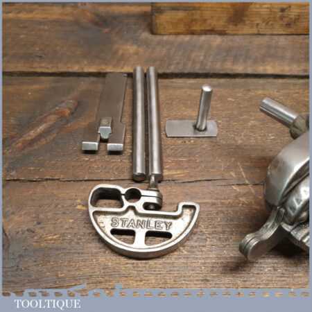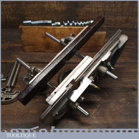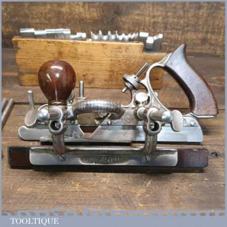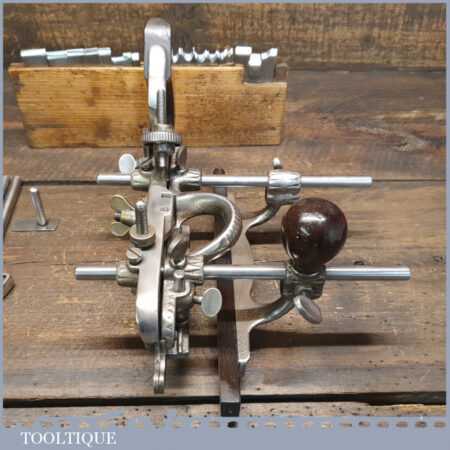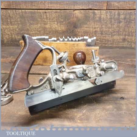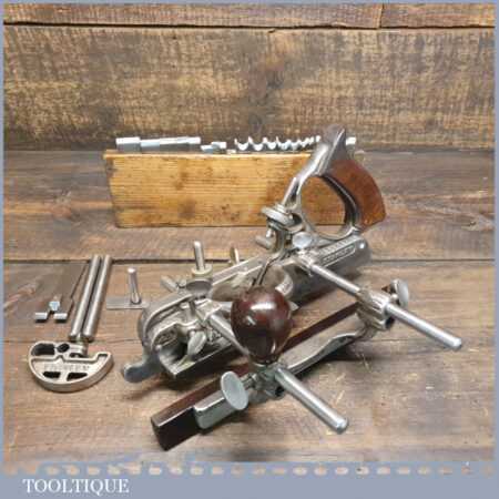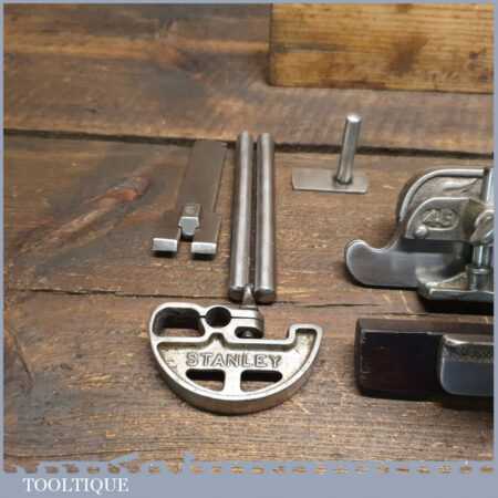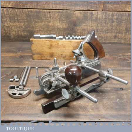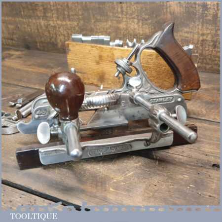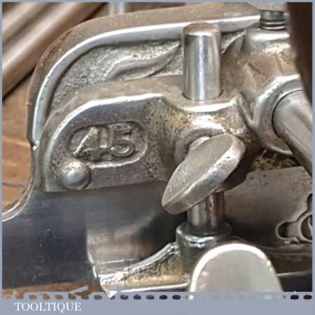 Vintage Stanley USA, No: 45 combination plough plane complete with a full set of cutters. The plane is in good condition and all components move smoothly. Note: We do not sharpen the irons.