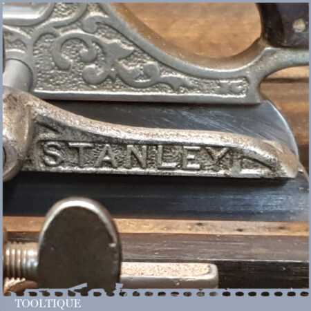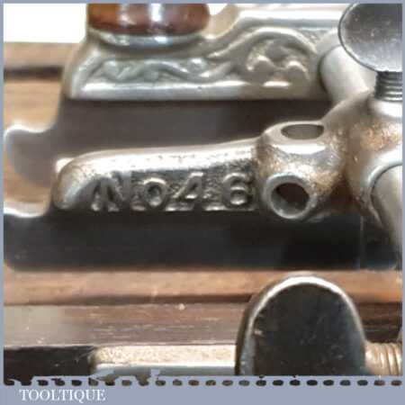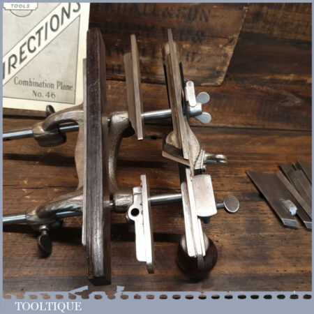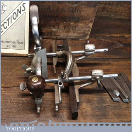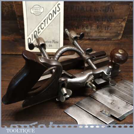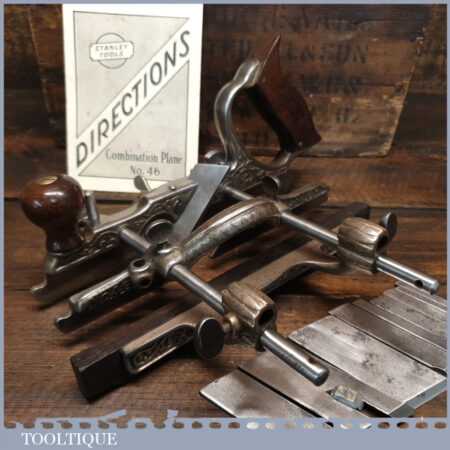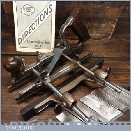 Vintage Stanley USA No: 46 skew blade combination plough plane complete with cutters. The plane is in excellent condition and all components move smoothly. Note: We do not sharpen the irons