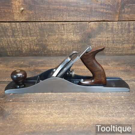 Vintage Stanley USA No: 5 ½ fore plane Pat date 1910 with rosewood handles and Stanley Rule & Level Iron. Fully refurbished and in good used condition, ready to use. Note: The sides have also been lapped flat so this is suitable for shooting.