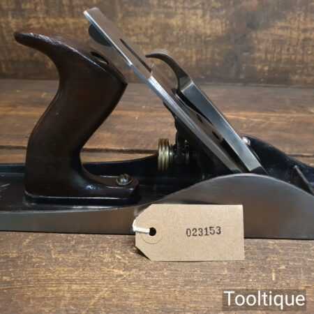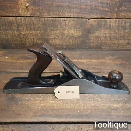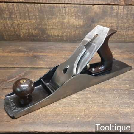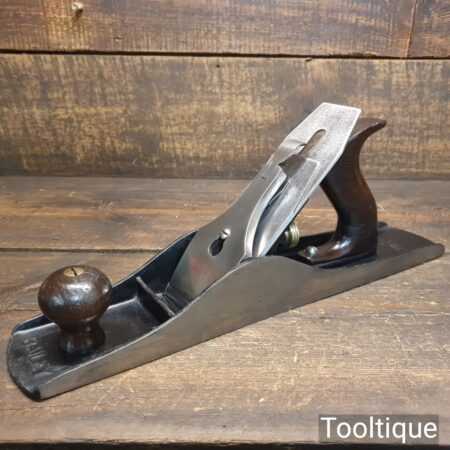 Vintage Stanley USA No: 5 ½ low knob fore plane (Pat dated 1910) with original iron and rosewood handles, fully refurbished and in good used condition, ready to use. Note: The sides are square and this is suitable for shooting, Tote has had a good solid and smooth repair.