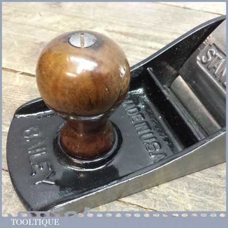 Vintage Stanley USA No: 5 ½ refurbished and ready to use. The plane was manufactured during WW2 as it has non standard parts and changes to save essential materials such as brass. There is no frog adjustment screw as this I presume was deemed none essential. It’s interesting from a collector’s point of view but you should be aware of this if you intend using it, although it will work just fine.