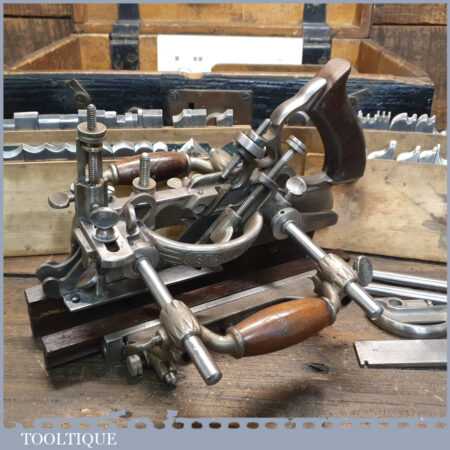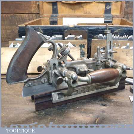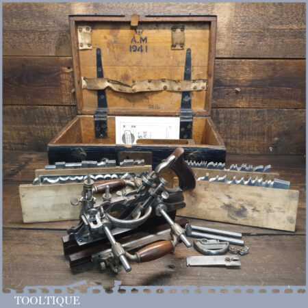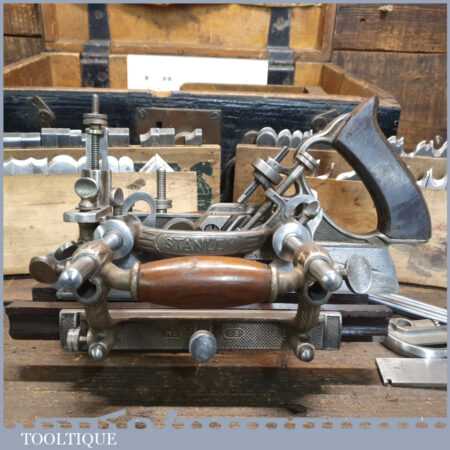 Vintage Stanley USA No: 55 combination plane, fully refurbished and in good used condition, ready to use. This has been thoroughly serviced and is complete with all its parts, contained in an old wooden air ministry box. Note: We do not sharpen the blades.