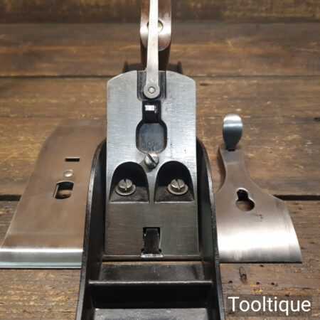 When refurbishing planes, we do not merely clean them to make them look good, they are restored to a level that ensures they are actually ‘in plane to 0.045mm’ sharpened, honed and all the components are thoroughly cleaned so that they move freely. Our planes are specifically reconditioned to satisfy professional tradesmen who will instantly know the difference between buying one of our planes over general other used ones