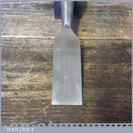 The chisel has been checked to ensure the tang is seated properly and the handle is solid and fit for use. All refurbished chisels are water cooled during the sharpening process to ensure the tempering is not affected. These old cast steel chisels are hand forged and far superior in quality because of the high carbon steel that was used which produces a keener edge, this was also generally used throughout the full length.