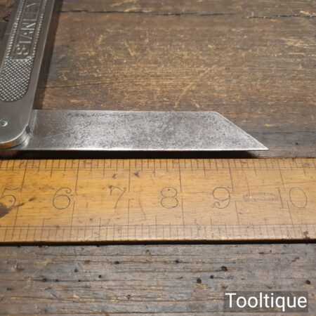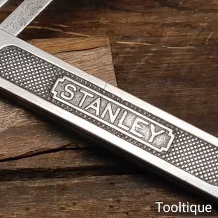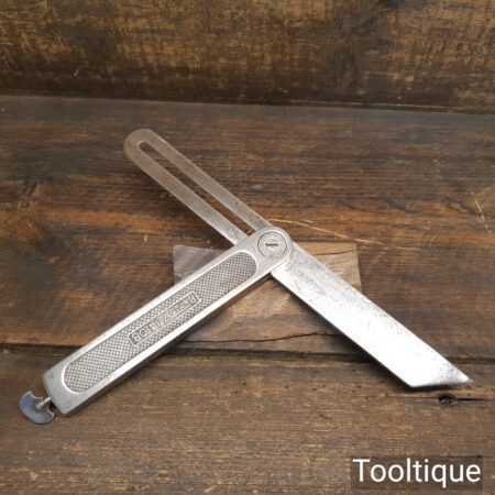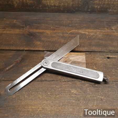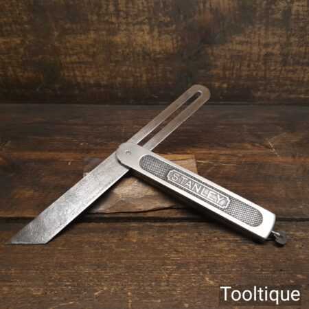 Vintage Stanley USA steel sliding bevel (Pat dated 1908) with 10” blade and quick release screw at the base of the main body, in good used condition. Note: Minor short crack defect in the body, this isn’t affecting its use
