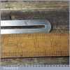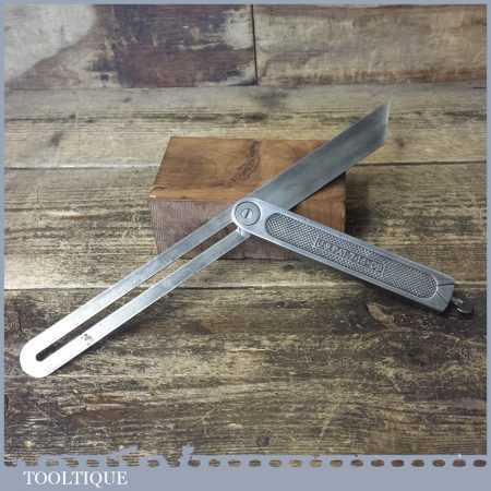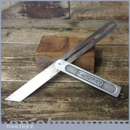 Vintage Stanley USA quick release steel sliding bevel, Pat dated 7-14-08 in good used condition, everything moves freely and it works as it should. This bevel has a 12” blade and quick release adjustment set screw at the base of the main body