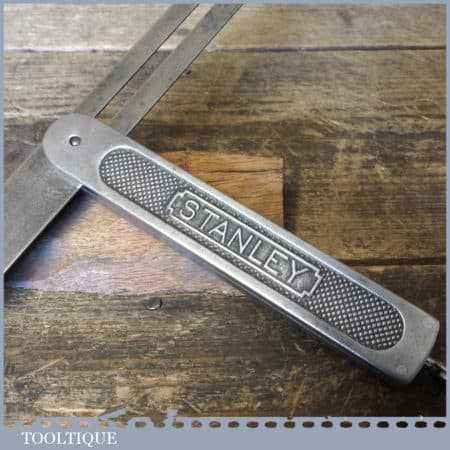 Vintage Stanley USA quick release steel sliding bevel, Pat dated 7-14-08 in good used condition, everything moves freely and it works as it should. This bevel has an approx 10” blade and quick release adjustment set screw at the base of the main body.