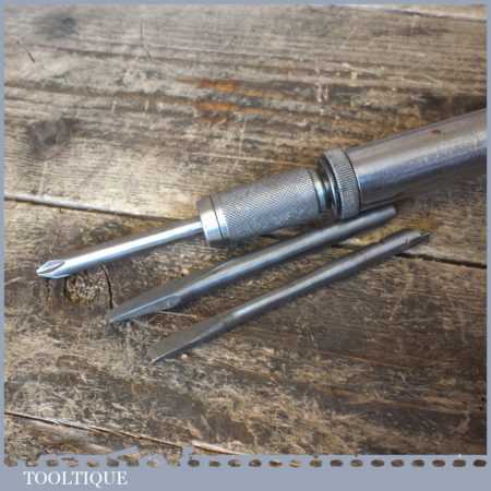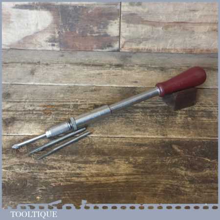 Vintage Stanley No: 130B Yankee pump action screwdriver complete with three bits, in good used condition.