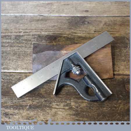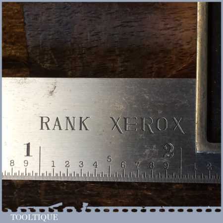 Vintage Starrett, USA 6” cast steel adjustable combination square, stamped ‘Rank Xerox’ and with 6” blade calibrated in 1/100”, fully refurbished and in good used condition.