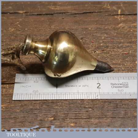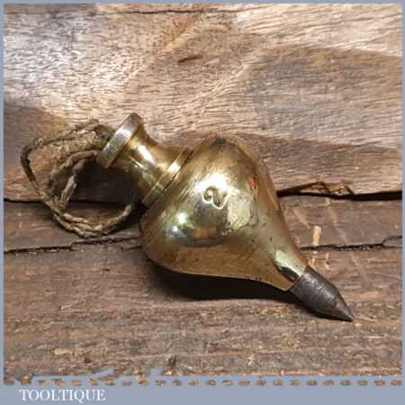 Vintage steel tipped brass plumb bob with string, in good used condition.