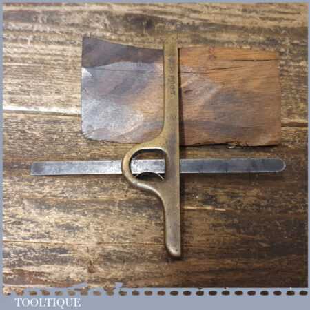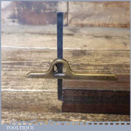 Vintage stonemason’s brass and steel depth square or gauge in good used condition.