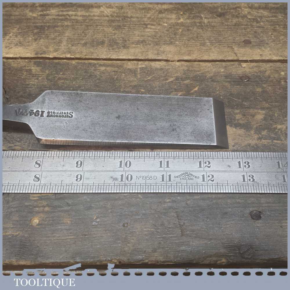 Vintage Stormont 1 ½” inch forged cast steel firmer chisel marked with ministry arrow mark and 1947, in good used sharp condition.