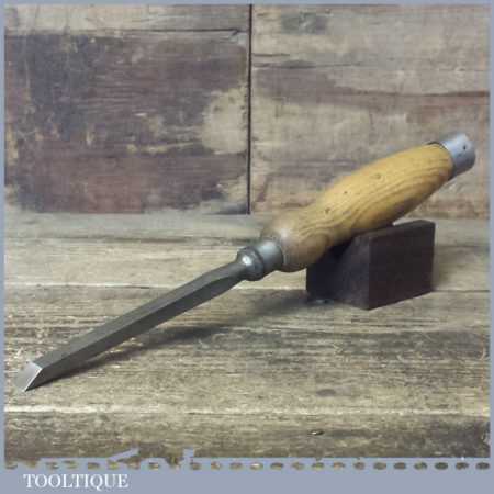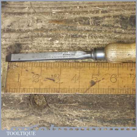Vintage Stormont carpenter’s 3/8” cast steel sash mortice chisel with reinforced ash handle in good used condition, fully refurbished sharpened and honed ready for use.