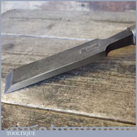 The chisel has been checked to ensure the tang is seated properly and the handle is solid and fit for use. All refurbished chisels are water cooled during the sharpening process to ensure the tempering is not affected. These old cast steel chisels are hand forged and far superior in quality because of the high carbon steel that was used which produces a keener edge, this was also generally used throughout the full length.