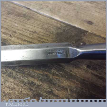 The chisel has been checked to ensure the tang is seated properly and the handle is solid and fit for use. All refurbished chisels are water cooled during the sharpening process to ensure the tempering is not affected. These old cast steel chisels are hand forged and far superior in quality because of the high carbon steel that was used which produces a keener edge, this was also generally used throughout the full length.