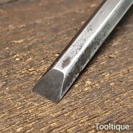 The chisel has been checked to ensure the tang is seated properly and the handle is solid and fit for use. All refurbished chisels are water cooled during the sharpening process to ensure the tempering is not affected.