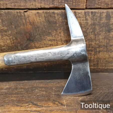 Vintage strapped fireman’s axe with beechwood handle measuring 20 ½” long in total, with a 2 ¾” cutting edge. the axe has been sharpened and water cooled to not change the temper.