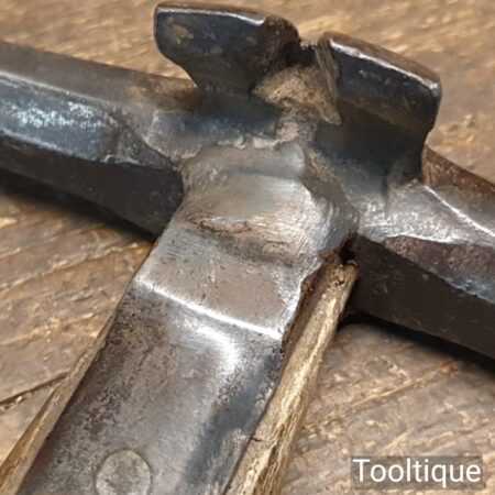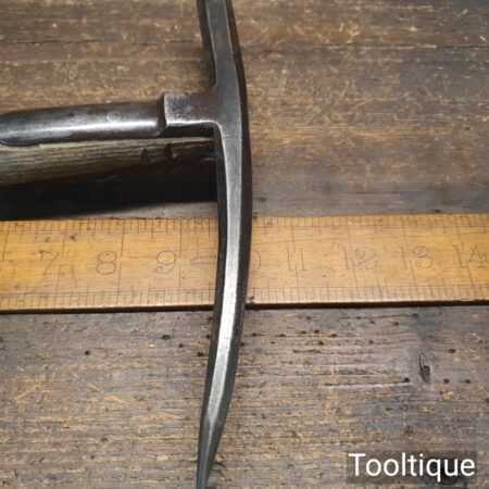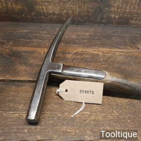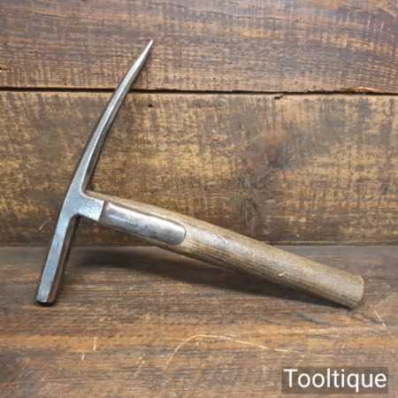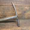 Vintage strapped slater’s roofing hammer with pick and side claw in good used condition. Note: Old but solid weld repair to one of the straps, see images