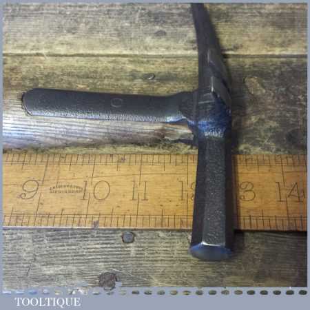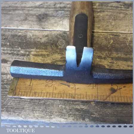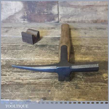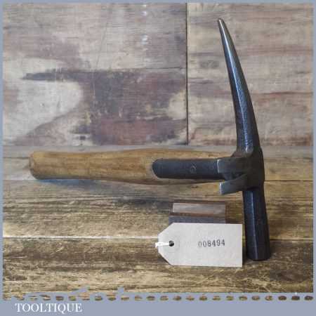 Vintage strapped slater’s roofing hammer with pick and side claw in good used condition.