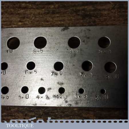 Vintage S.W. metric cast steel drill and wire gauge in good used condition.