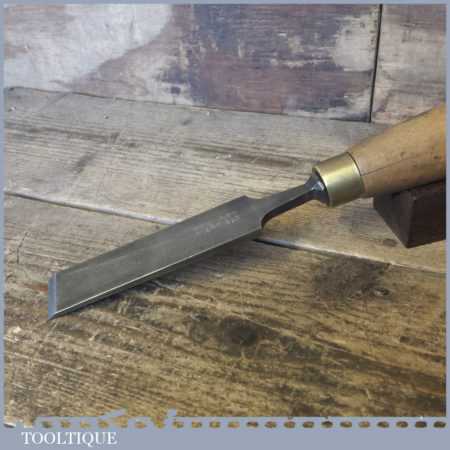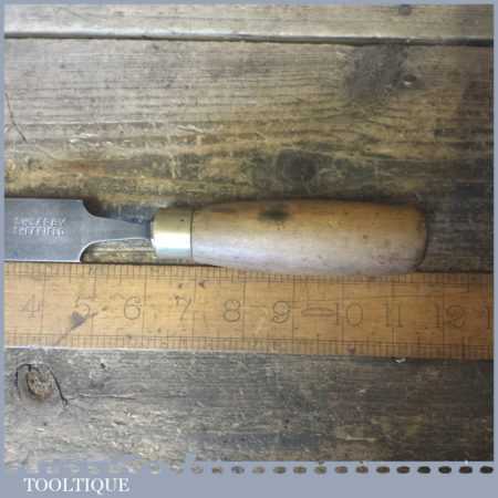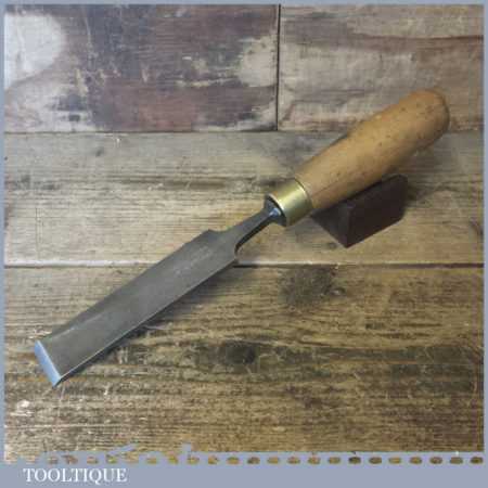 The chisel has been checked to ensure the tang is seated properly and the handle is solid and fit for use. All refurbished chisels are water cooled during the sharpening process to ensure the tempering is not affected. These old cast steel chisels are hand forged and far superior in quality because of the high carbon steel that was used which produces a keener edge, this was also generally used throughout the full length.