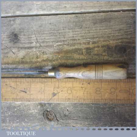 The chisel has been checked to ensure the tang is seated properly and the handle is solid and fit for use. All refurbished chisels are water cooled during the sharpening process to ensure the tempering is not affected. These old cast steel chisels are hand forged and far superior in quality because of the high carbon steel that was used which produces a keener edge, this was also generally used throughout the full length.
