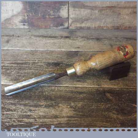 Vintage Swearby Tools Sheffield carpenter’s 3/4” gouge chisel with ash handle in good used condition, fully refurbished sharpened and honed ready for use.