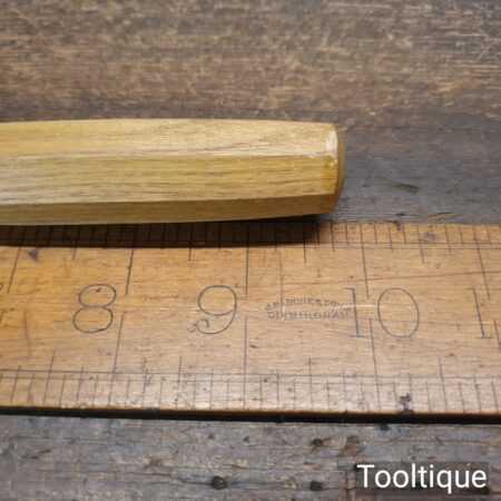 The chisel has been checked to ensure the tang is seated properly and the handle is solid and fit for use. All refurbished chisels are water cooled during the sharpening process to ensure the tempering is not affected.