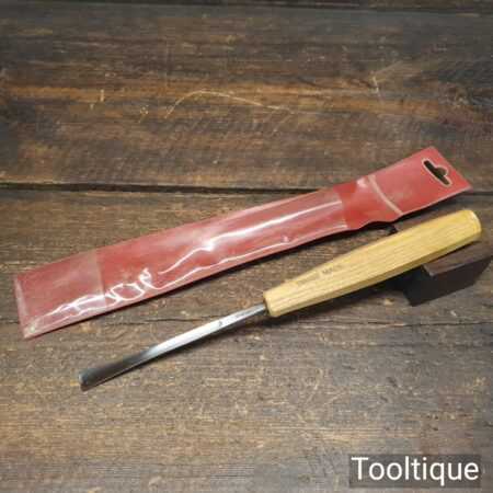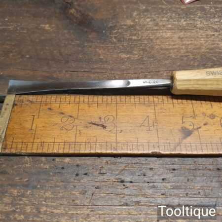 Vintage Swiss made 7/16” woodcarving fishtail gouge chisel with octagon hardwood handle in good used condition, fully refurbished sharpened and honed ready for use.