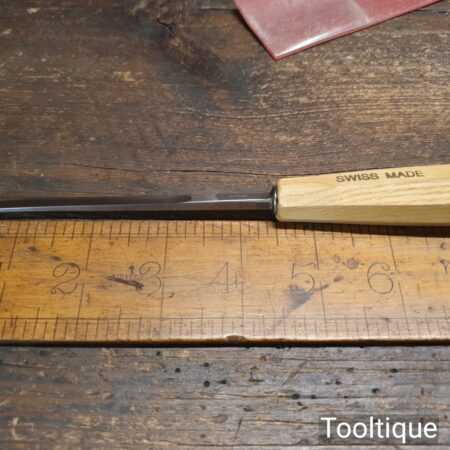 Vintage Swiss made Pfeil 5/16” straight fishtail woodcarving gouge chisel with octagon hardwood handle in good used condition, fully refurbished sharpened and honed ready for use.