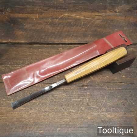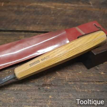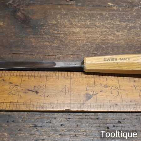 Vintage Swiss made 9/16” woodcarving fishtail gouge chisel with octagon hardwood handle in good used condition, fully refurbished sharpened and honed ready for use.