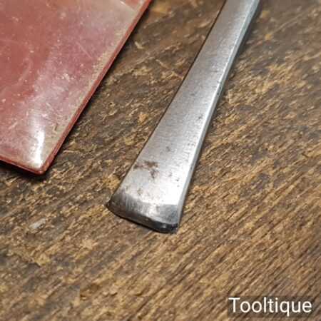 The chisel has been checked to ensure the tang is seated properly and the handle is solid and fit for use. All refurbished chisels are water cooled during the sharpening process to ensure the tempering is not affected.