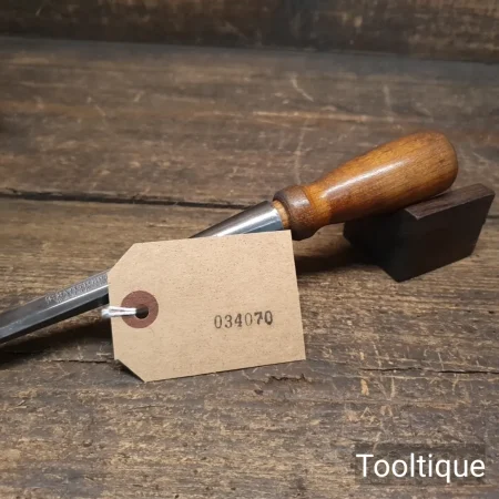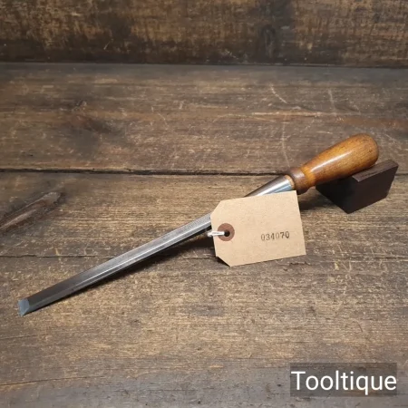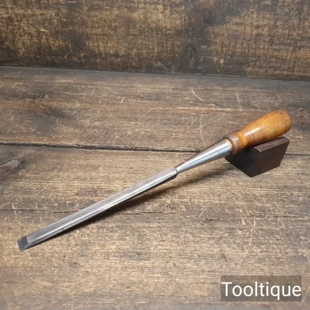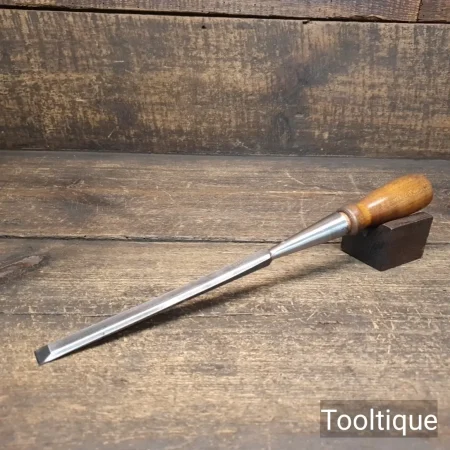 Vintage T. A Witherby ½” Long Series Socket Bevel Edge Chisel with a Cherrywood Handle, fully refurbished ready for use and in good used condition. Note: New replacement handle is tight fitting. All refurbished chisels are water cooled during the sharpening & flattening process to ensure the tempering is not affected.